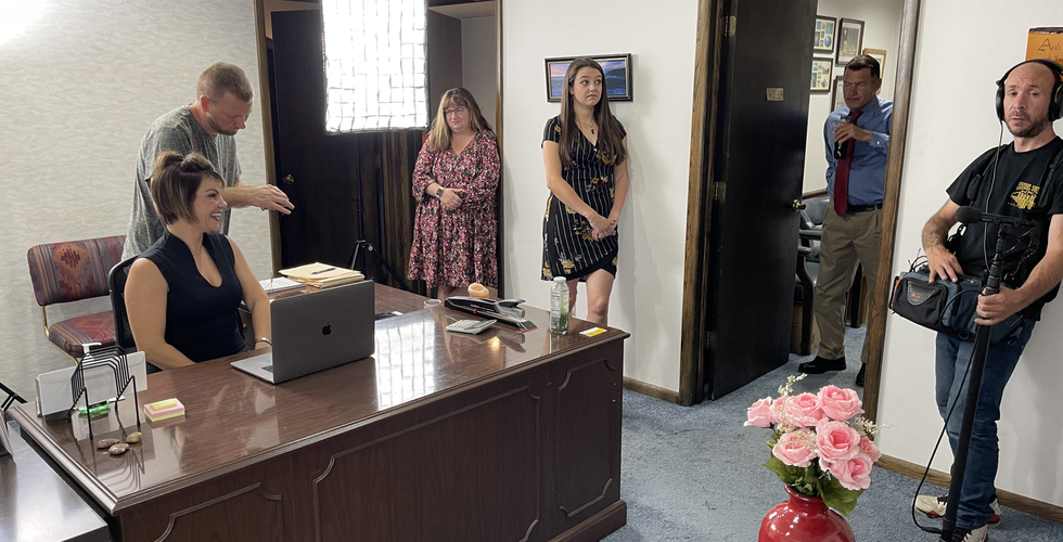 Prior to this, on Saturday, September 25th, the crew packed up and drove out to McKnight Road, where they filmed for 13 hours at the offices of Quantum Financial Advisors. Owner Andre Weisbrod opened his doors to the crew to shoot scenes that are set in Alice's workplace. The 25th was also the final day on-set for cast member Hattie Baier, who plays the role of Alice's somewhat shy co-worker, Ginny.